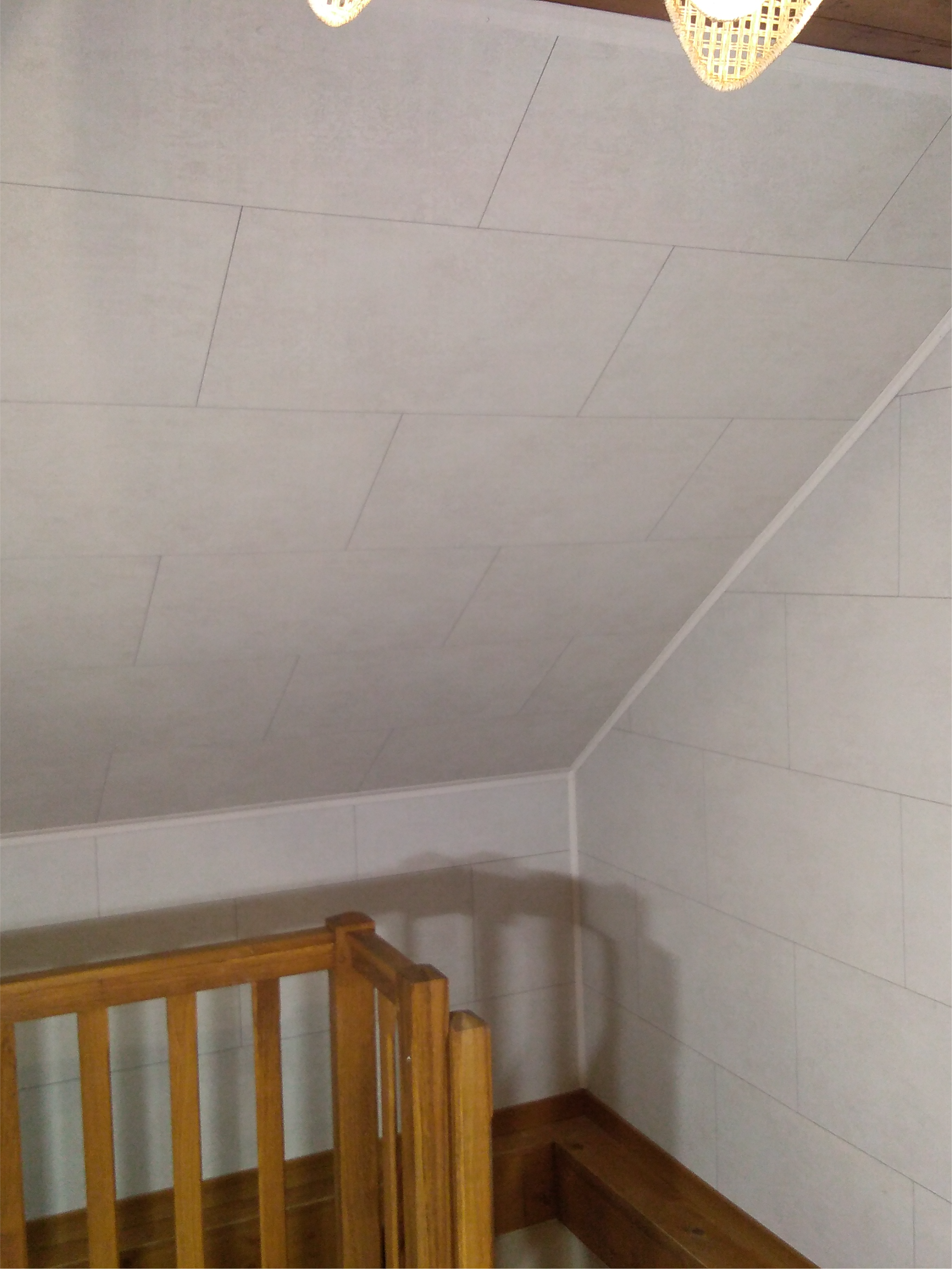 Ici nous avons une rénovation du plafond et des murs, avec pose de dalles de PVC.