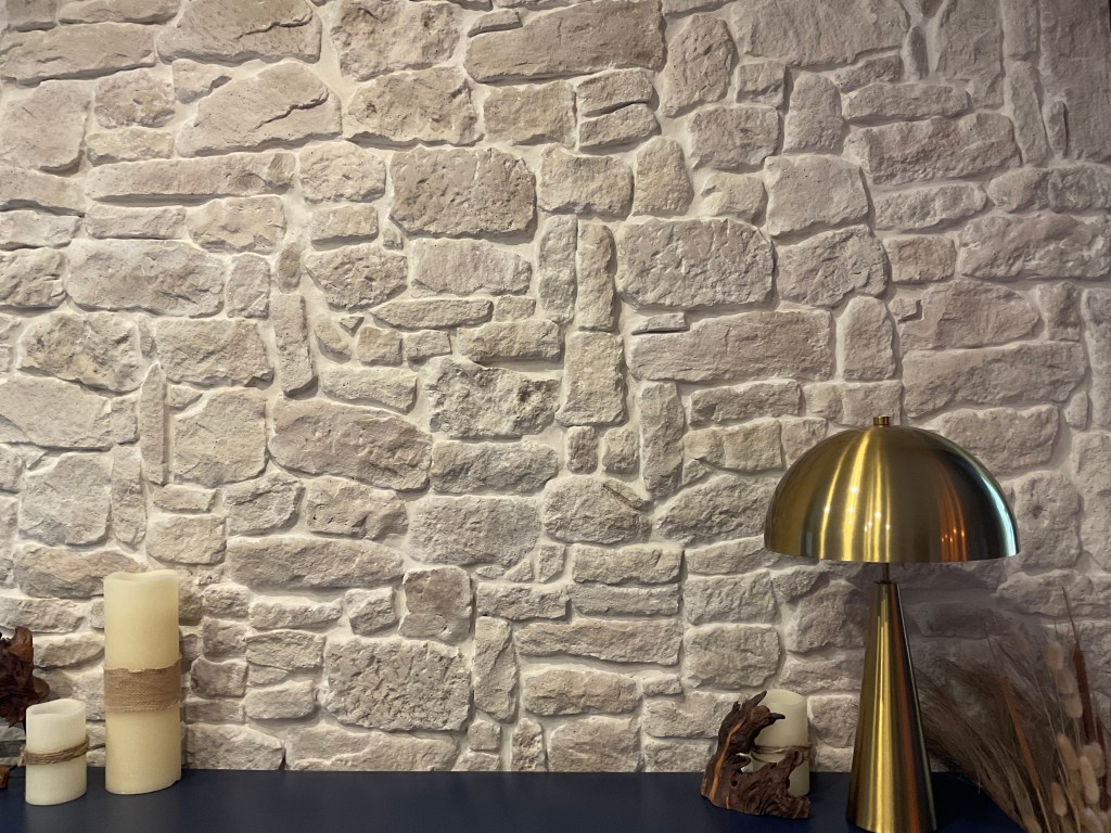 Pose de pierres murales décoratives.